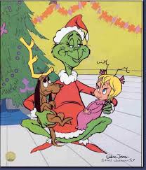 In a later story about the Whos, a cousin of Jojo the psychopath helps a known felon to steal every last thing in Whoville. She spots this criminal early on in the story, and instead of blowing the whistle on the Grinch she allows herself to be bought off with a glass of water and a pat on the head. I’m thinking a cut of the take as well. In the end, the Grinch changes his ways (perhaps he found Jesus) and he returns all of the things that he stole. Instead of putting him in prison where he belongs, the Whos give him a place of honour at their Christmas feast and do you know who is right there beside him to get the prime cut of the roast beast? Cindy Lou Who, that’s who!